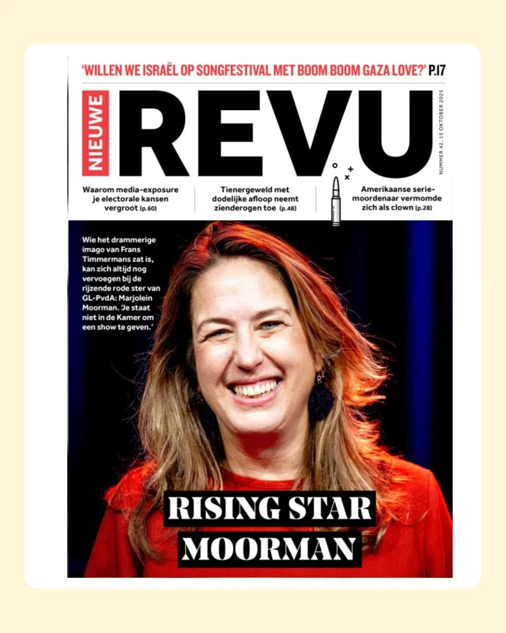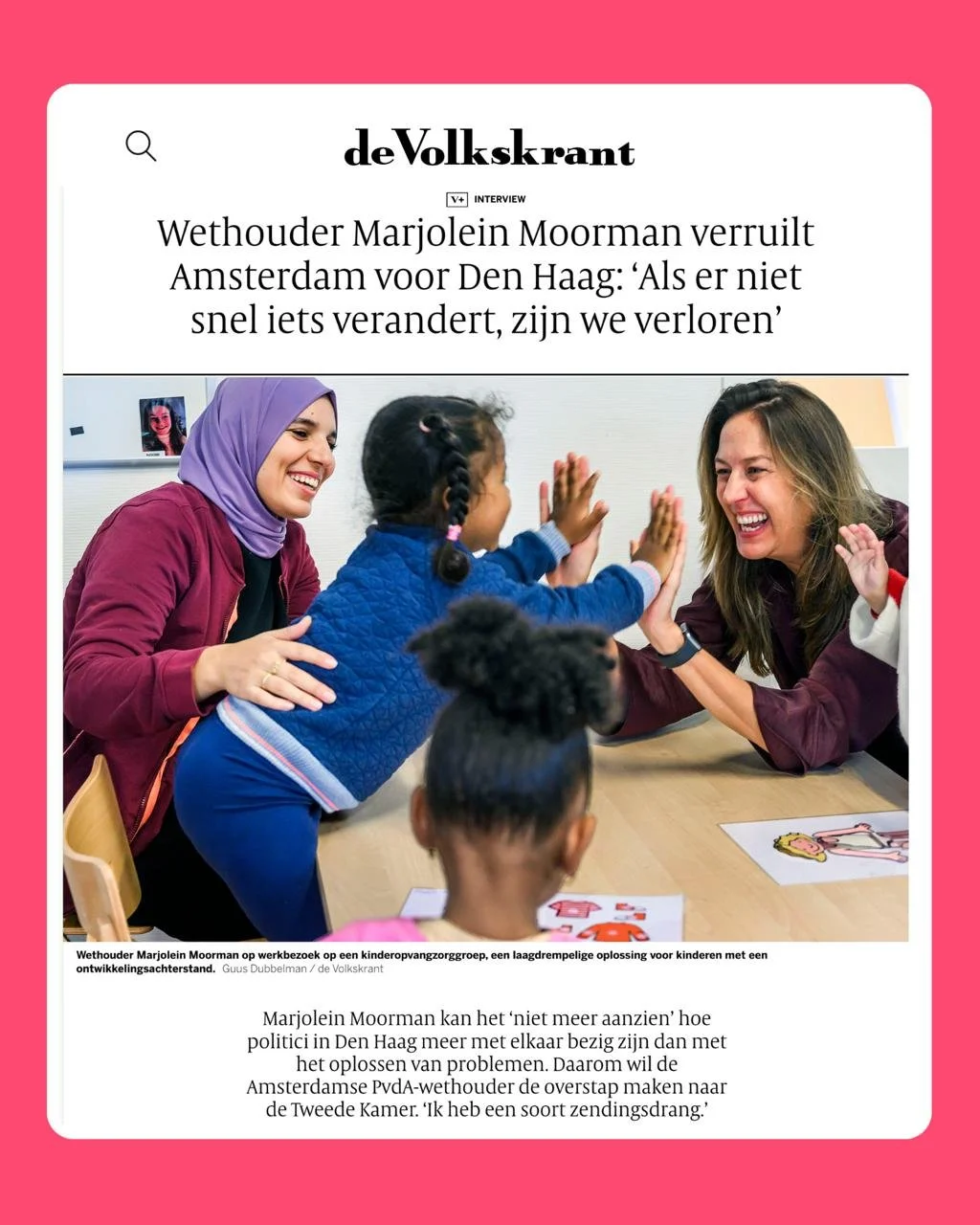 Bianca Palm 27-10-2025 Bianca Palm 27-10-2025 Marjolein bij Dr Kelder en Co Meer lezen Bianca Palm 22-10-2025 Bianca Palm 22-10-2025 Marjolein in de Nieuwe Revu Meer lezen Bianca Palm 18-10-2025 Bianca Palm 18-10-2025 ‘De wet van Moorman’ Meer lezen Bianca Palm 13-10-2025 Bianca Palm 13-10-2025 Aanpak scheidingen Meer lezen Bianca Palm 13-10-2025 Bianca Palm 13-10-2025 WNL Haagse lobby Meer lezen Bianca Palm 12-10-2025 Bianca Palm 12-10-2025 Te gast in de PowCast Meer lezen Bianca Palm 03-10-2025 Bianca Palm 03-10-2025 Marjolein bij Pauw & de Wit Meer lezen Bianca Palm 01-10-2025 Bianca Palm 01-10-2025 Interview met De Volkskrant Meer lezen Bianca Palm 30-09-2025 Bianca Palm 30-09-2025 NRC: ‘Van Amsterdam naar Den Haag’ Meer lezen Bianca Palm 28-09-2025 Bianca Palm 28-09-2025 Ekklesia Meer lezen Bianca Palm 26-09-2025 Bianca Palm 26-09-2025 Marjolein in Vrij Nederland Meer lezen Bianca Palm 26-09-2025 Bianca Palm 26-09-2025 Marjolein in de Margriet Meer lezen Bianca Palm 22-09-2025 Bianca Palm 22-09-2025 Dubbelinterview in Trouw Meer lezen Bianca Palm 08-09-2025 Bianca Palm 08-09-2025 Gratis kraamzorg in Zuidoost Meer lezen Bianca Palm 29-08-2025 Bianca Palm 29-08-2025 De Binnenkamer Meer lezen Bianca Palm 27-08-2025 Bianca Palm 27-08-2025 Op naar Den Haag: Kandidaat Kamerlid Meer lezen Bianca Palm 31-07-2025 Bianca Palm 31-07-2025 Interview in Het Financiele Dagblad Meer lezen Bianca Palm 16-07-2025 Bianca Palm 16-07-2025 #Zuurstof met Roxane van Iperen Meer lezen Bianca Palm 08-07-2025 Bianca Palm 08-07-2025 Podcast over poen Meer lezen Bianca Palm 07-07-2025 Bianca Palm 07-07-2025 #Zuurstof met Marjan Minnesma Meer lezen Oudere berichten